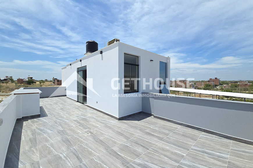 Tercer piso: Habitación con closet, baño completo compartido, amplia terraza social, lavandería con espacio para tendal.